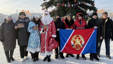 Чрезвычайные Дед Мороз и Снегурочка провели акцию «Стоп огонь» на центральной площади города Читы.