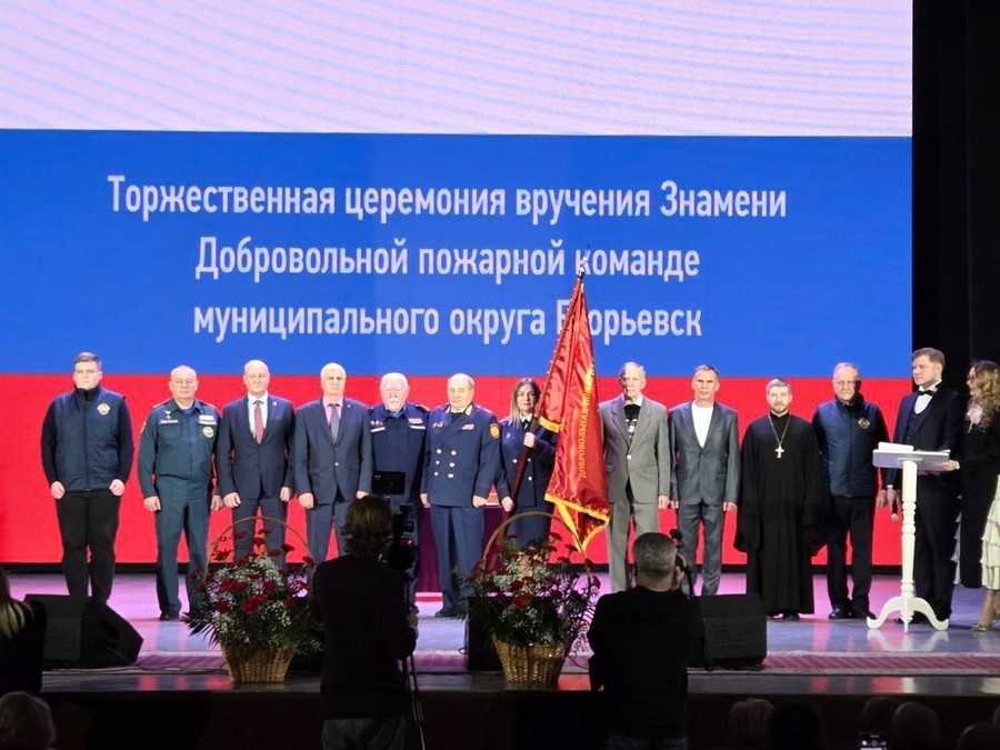 В рамках праздника состоялась торжественная церемония крепления полотнища знамени Общественного учреждения «Добровольная пожарная команда муниципального округа Егорьевск Московской области».