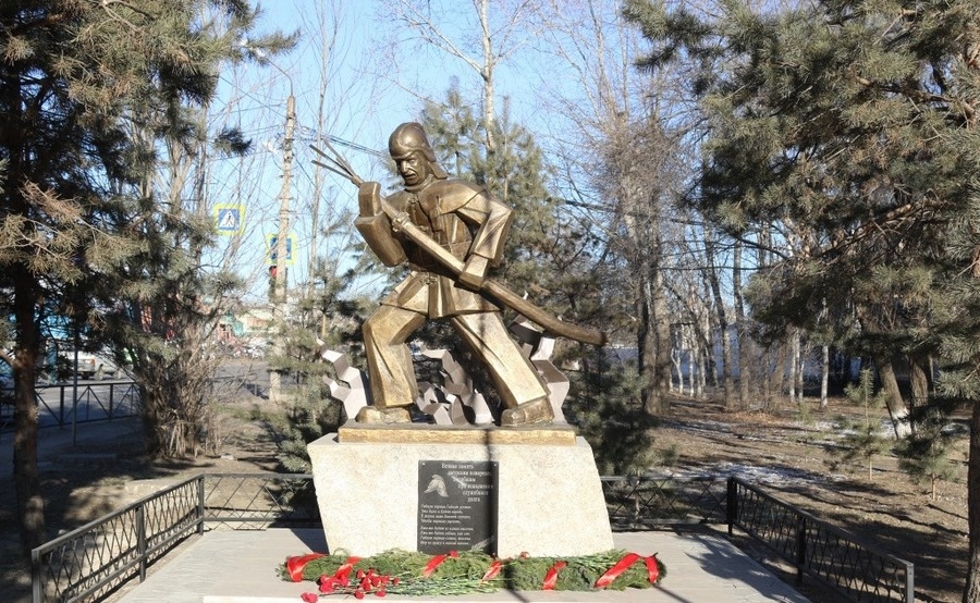 Под руководством мастера-пожарного специализированной пожарно-спасательной части г. Благовещенска Алексея Сидорова бойцы 12-й пожарно-спасательной части не просто установили гранитный монумент, но и создали соответствующую атмосферу. Алексей Николаевич является действительным членом Академии художеств мира «New era», заместителем председателя Амурской общественной организации «Творческий союз художников России», руководителем изостудии им. В. Верещагина при УВД Амурской области. Основной темой его творчества является человек, где отражаются волевые, героические черты его характера. В 2020 году талантливый художник создал монумент, воплотивший обобщенный образ пожарного. Установлен памятник на месте предыдущего.