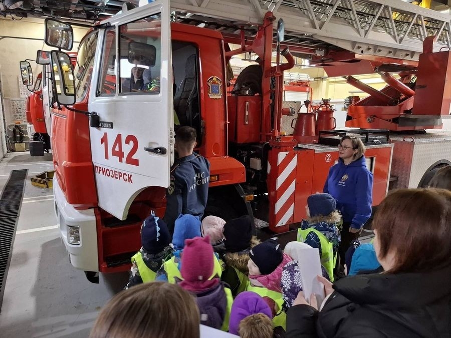 Сотрудником социально ориентированной деятельности Приозерского местного отделения ВДПО Ленинградской области совместно с представителем отдела надзорной деятельности и профилактической работы Приозерского района на территории 142 пожарной части отряда Государственной противопожарной службы Приозерского района для воспитанников детских садов № 1 и № 5 были организованы познавательные экскурсии в пожарную часть.