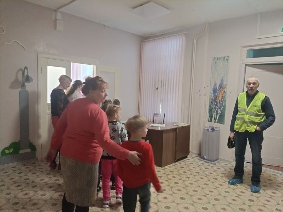 В детском саду «Улыбка» в Тихвине Ленинградской области под наблюдением представителя местного отделения ВДПО Ленинградской области дети, педагоги и обслуживающий персонал успешно эвакуировались из здания.