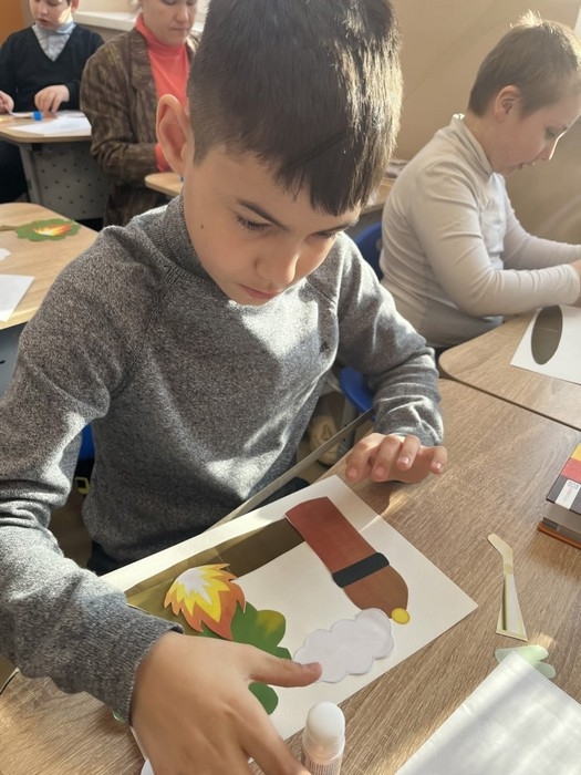 Для закрепления полученных знаний ребятам было предложено заняться творческой деятельностью. Вооружившись цветной бумагой, клеем и ножницами, дети сделали красочную аппликацию «Наш друг-огнетушитель».