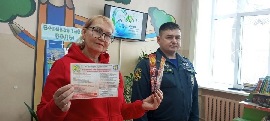 В читальном зале центральной детско-юношеской библиотеки города Новочебоксарска состоялась встреча с инструктором по социально ориентированной деятельности ВДПО Чувашской Республики Еленой Павловой и инспектором Новочебоксарского инспекторского участка Центра ГИМС МЧС России по Чувашии Максимом Михайловым.