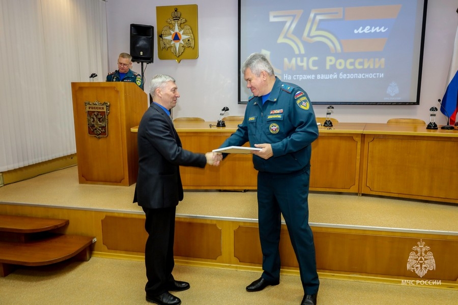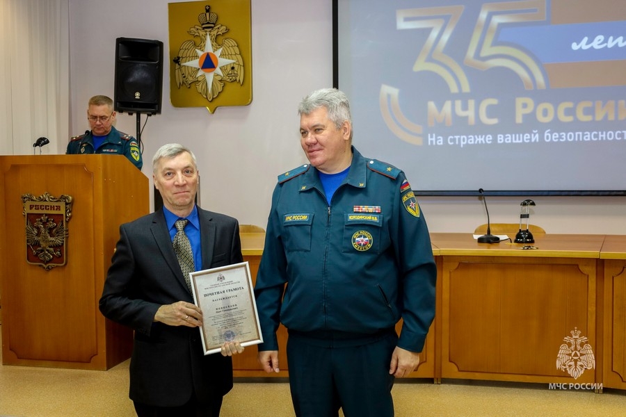 Начальник Главного управления МЧС России по Омской области Владислав Викторович Колодинский лично вручил Олегу Геннадьевичу Почетную грамоту и поблагодарил за плодотворную работу.