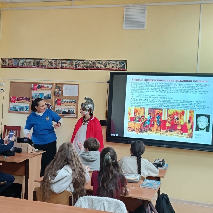 12 февраля 2026 г. ведущий специалист Учебно-методического центра военно-спортивной подготовки и патриотического воспитания МПГУ к.п.н. Л.Ю. Скрипник провела интерактивный урок в 5 классе в соответствии с ФРП, с акцентом на развитие пожарной охраны на рубеже нашей эры. Особенно важно было донести до пятиклассников, что огонь – это важный инструмент человеческой цивилизации, но только в умелых руках. Поэтому человек, обладая способностью планировать свои действия и делать выводы из ошибок, с древнейших времен задумался о борьбе с пожарами.