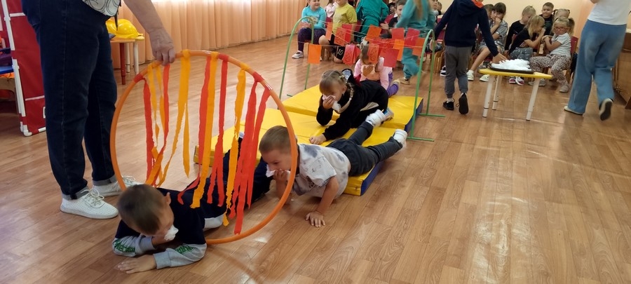 Следующим этапом стало освоение путей эвакуации. Перед тем, как отправиться в путь, дошколятам рассказали, почему при задымлении нужно прикрывать нос и рот влажной тканью. А затем началось самое интересное – им предстояло пройти через "дым" и "огоньки" пожара, используя специальный реквизит. Каждый ребенок с честью справился с этим испытанием, демонстрируя ловкость и смекалку, "пряча" свое дыхание и ползком преодолевая импровизированную опасную зону.