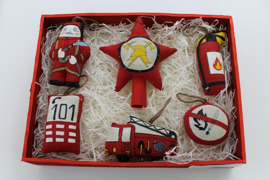 Жюри отметило проделанную просветительскую работу педагогического состава по профилактике безопасности жизнедеятельности. А одной из лучших работ конкурса стала работа обучающихся МОУ «СОШ №13» Ермакова Ильи, Ермакова Максима - макет «Набор ёлочных игрушек «Маленькому пожарному», под руководством учителя начальных классов Батылиной О.В.