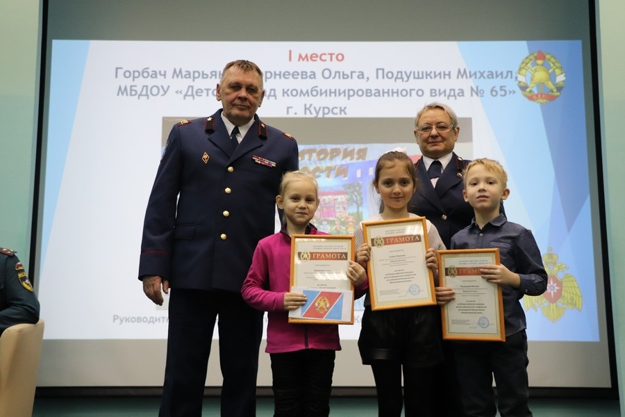 Также исполняющим обязанности начальника Главного управления МЧС России по Курской области С. М. Шаровым и председателем совета Курского областного отделения ВДПО И.А. Козьминым были вручены дипломы, грамоты и памятные подарки самым юным участникам совещания – детям и дружинам юных пожарных, победителям и призерам областных и Всероссийских конкурсов на пожарную тематику.