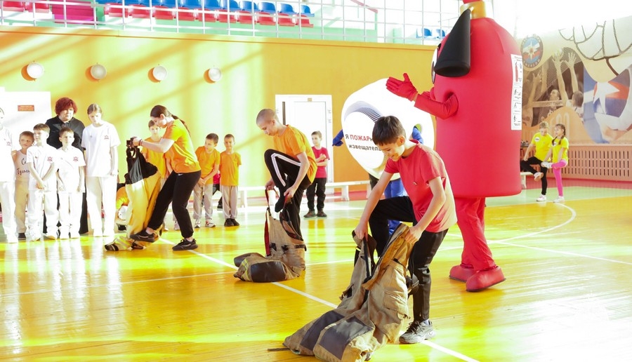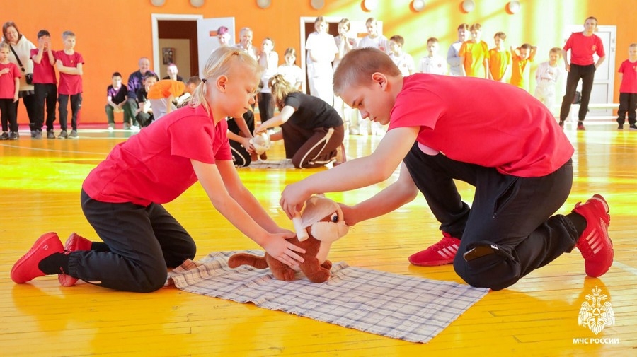 Кроме этого, ребята оказывали помощь пострадавшим игрушкам, бинтовали их и эвакуировали в безопасное место, а финальным испытанием стало надевание на скорость боевой амуниции спасателя.