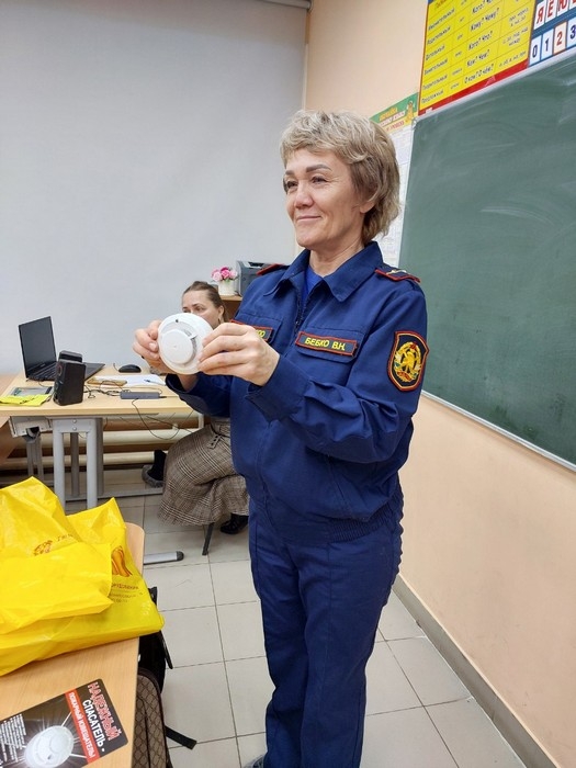 Особый акцент инструктор сделала на автономных пожарных извещателях — «неусыпных стражах домашнего очага». Рассказала о назначении, использовании, работе этих современных помощников. Радует, что во многих домах они уже есть!