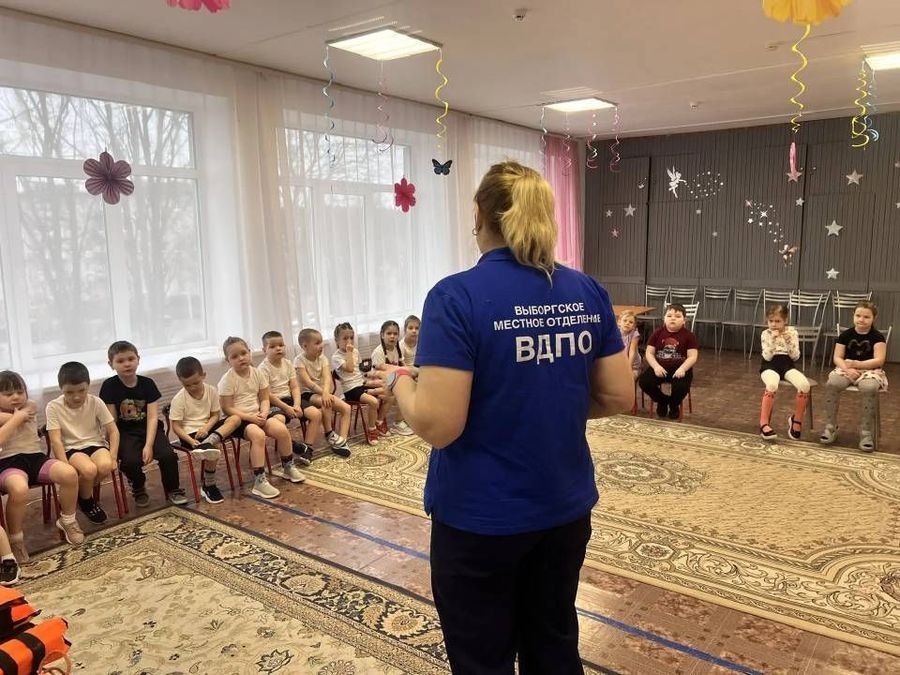 Инструктор по социально ориентированной деятельности Выборгского местного отделения ВДПО ЛО познакомила дошколят с важными правилами проведения у водоёмов. Занятие началось с увлекательного просмотра обучающегося мультфильма о правилах безопасности на тонком весеннем льду.