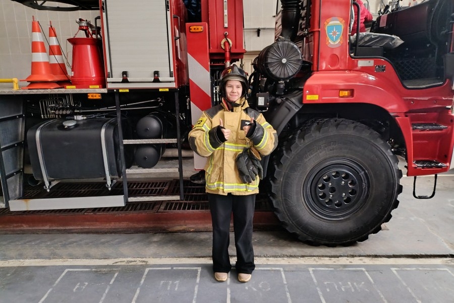 Дополнительным неожиданным сюрпризом для ребят стало посещение Пожарно-спасательной части № 7, где они познакомились с инвентарем, который спасатели предложили примерить на себя и побывали в гараже с пожарной техникой.