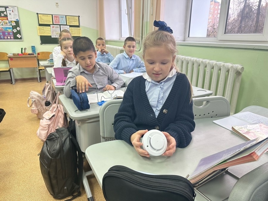 Урок прошел в формате живого диалога. Школьники активно задавали вопросы: «А он сработает, если поджечь бумагу?», «Что делать, если он запищал?», «Правда ли, что его нужно регулярно проверять?». По итогам беседы дети твердо усвоили, что пожарный извещатель является первым и самым эффективным средством оповещения о пожаре.