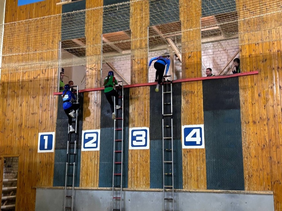 • 4 декабря спортсмены демонстрировали скорость и ловкость в первом этапе — подъеме по штурмовой лестнице в окно учебной башни.