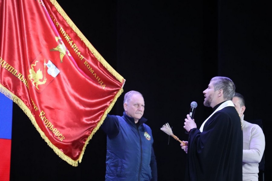 В рамках праздника состоялась торжественная церемония крепления полотнища знамени Общественного учреждения «Добровольная пожарная команда муниципального округа Егорьевск Московской области».