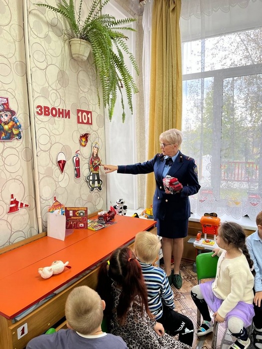 В гости к ребятам пришла инструктор ВДПО Наталья Корелина. Вместе они детально разобрали все действия при пожаре: от сигнала тревоги до выхода по безопасному маршруту.