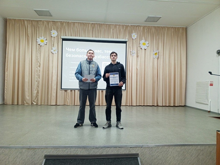 Студентов – добровольцев отметили благодарственными письмами «За проявленную активность, эффективное сотрудничество и личный вклад в организацию профилактических мероприятий по пожарной безопасности на территории Кузбасса, а также в связи с празднованием Дня добровольца России» от Кемеровского регионального отделения «Всероссийское добровольное пожарное общество».