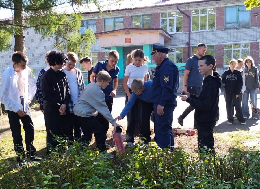 Наука тушить: карельские школьники освоили огнетушитель на практике