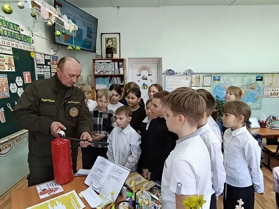 В Лазовском районе Приморского края в средней общеобразовательной школе прошло практическое занятие по основам пожарной грамотности. Мероприятие организовали: преподаватель начальных классов Валентина Хлебникова и представитель ВДПО Руслан Яворовский. Они рассказали о назначении огнетушителя и научили детей им пользоваться.