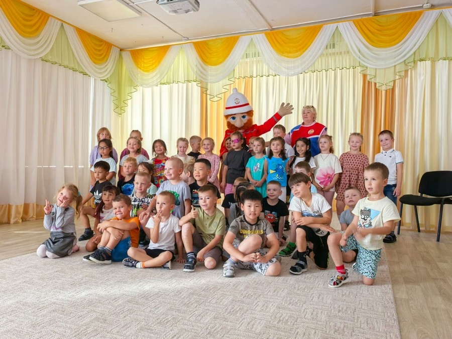 В рамках месячника пожарной безопасности 24 сентября, в стенах МАДОУ №48 «Малыш» города Южно-Сахалинска, сотрудники Сахалинского областного отделения ВДПО провели интересный урок по пожарной безопасности. С самого начала детей встретил яркий и добрый «пожарный», который сразу привлёк внимание ребят.