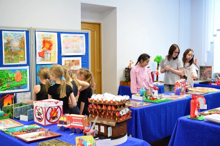 Первые посетители уже успели ознакомиться с творениями юных талантов, чьи работы призывают: «Будьте внимательны с огнем!».