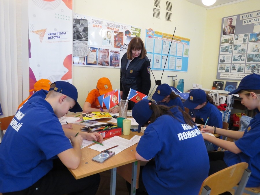 Под чутким сопровождением инструктора Смоленского городского отделения ВДПО Ирины Захарчук ребята старательно выводили текст поздравления к 23 февраля, рисуя символы России и праздника.