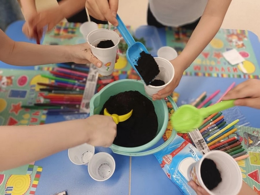 Получился букет, который не горит, но напоминает об опасности огня. Далее расписали 35 горшочков с живой рассадой. Бархатцы и календула — теперь под личной защитой юных садоводов.