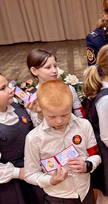 Юные пожарные принесли присягу, получили удостоверения, памятные значки отряда и сладкий подарок.
