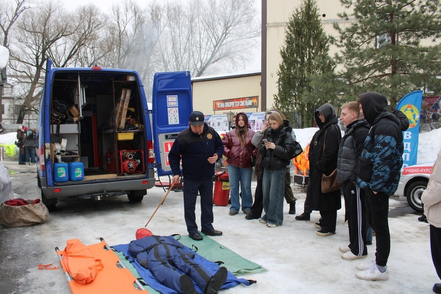 Практическая часть занятия оказалась особенно ценной для студентов. Они имели возможность изучить пожарно-техническое оснащение мобильного учебно-тренировочного комплекса УКК ВДПО, предназначенного для выездных занятий на предприятиях региона.