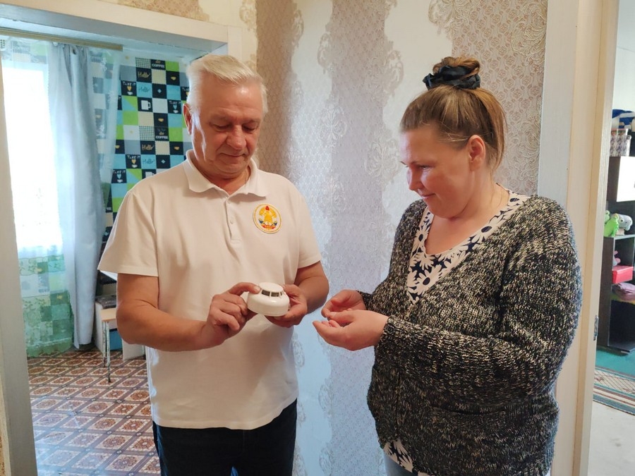 Еще Андрей Бахарев установил пожарный извещатель в одном из домов села Ключи. Это простое устройство может стать надёжным помощником многодетной семье в случае возникновения пожара. Так же сотрудник ВДПО напомнил всем членам семьи, какие правила необходимо строго соблюдать, чтобы не допустить пожароопасной ситуации.