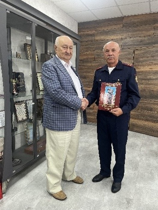 Ветеран пожарной охраны А.В.Солин и председатель совета Нижегородского областного отделения ВДПО П.Н.Кемаев