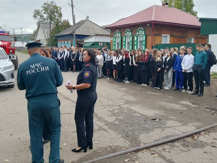 Заместитель начальника отдела надзорной деятельности и профилактической работы МЧС по Усть-Кутскому району Алексей Плындин и начальник 3 отдельного поста Николай Лудченко не только рассказали о своей работе, но и провели для всей школы учебную эвакуацию. По сигналу тревоги все ученики и учителя быстро и организованно покинули здание.