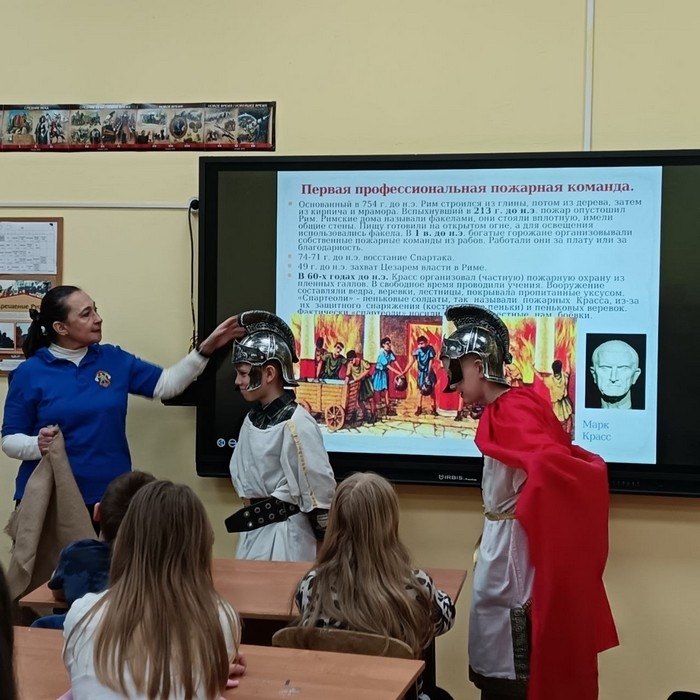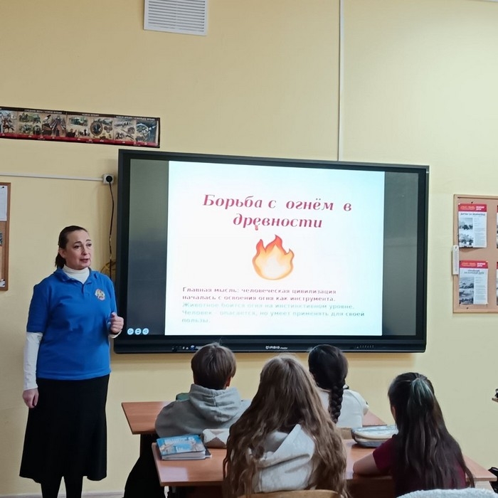 12 февраля 2026 г. ведущий специалист Учебно-методического центра военно-спортивной подготовки и патриотического воспитания МПГУ к.п.н. Л.Ю. Скрипник провела интерактивный урок в 5 классе в соответствии с ФРП, с акцентом на развитие пожарной охраны на рубеже нашей эры. Особенно важно было донести до пятиклассников, что огонь – это важный инструмент человеческой цивилизации, но только в умелых руках. Поэтому человек, обладая способностью планировать свои действия и делать выводы из ошибок, с древнейших времен задумался о борьбе с пожарами.