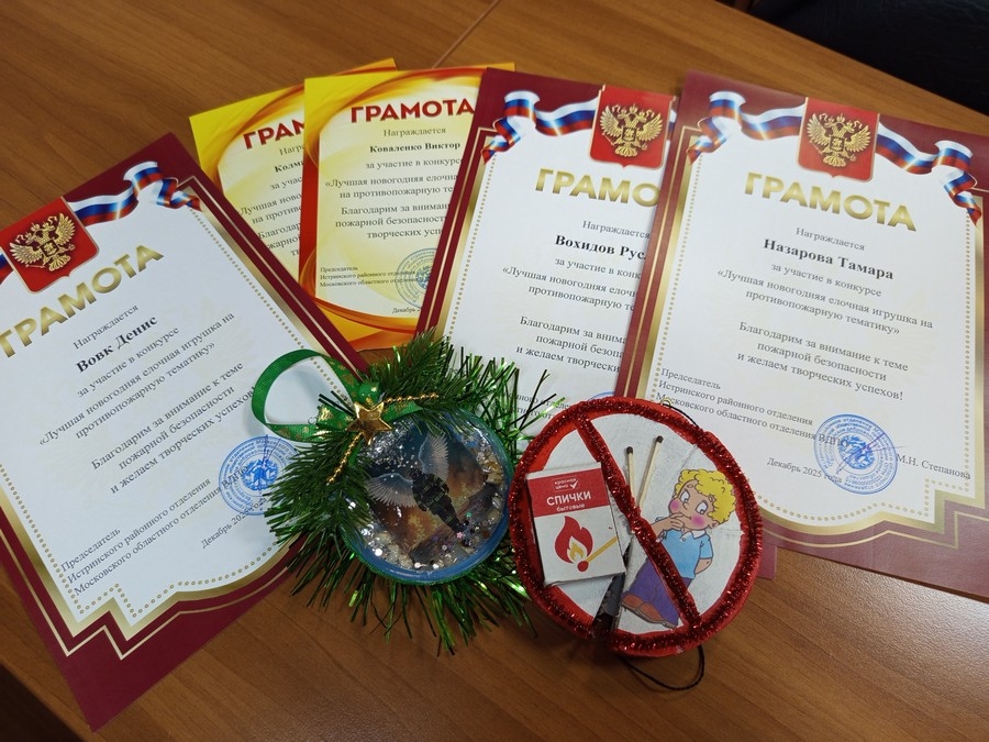 В Истринском муниципальном округе завершился конкурс «Лучшая новогодняя игрушка на противопожарную тематику», организованный Истринским отделением ВДПО совместно с МОУ ДО «Центр развития творчества детей и юношества Ровесник». На конкурс было представлено более 150 работ учащимися дошкольных и общеобразовательных учреждений.