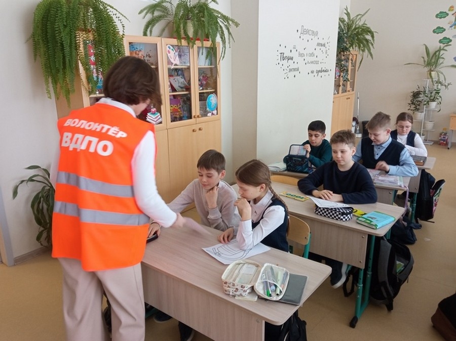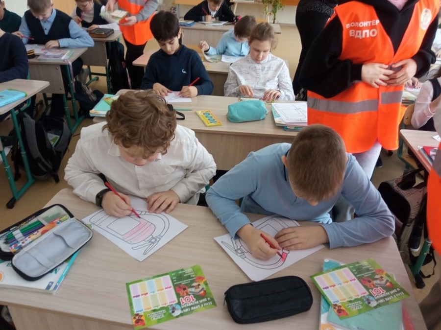 Очередные занятия волонтеры ВДПО провели с учащимися начальных классов средней школы № 46 города Калуги.