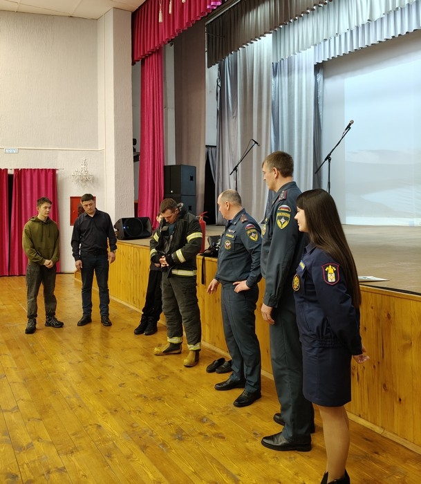 На церемонии торжественного поздравления присутствовали старшеклассники МБОУ "Любино-Малоросской" СОШ, для которых было проведено профориентационное мероприятие по пожарной безопасности и основам ГО.
