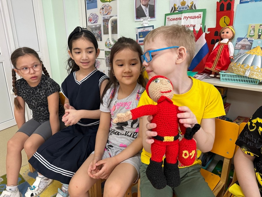 Вместо строгих лекций и скучных правил, подготовленных взрослыми, дети увидели вязаную игрушку — доброго «пожарного», который сразу завоевал внимание малышей.