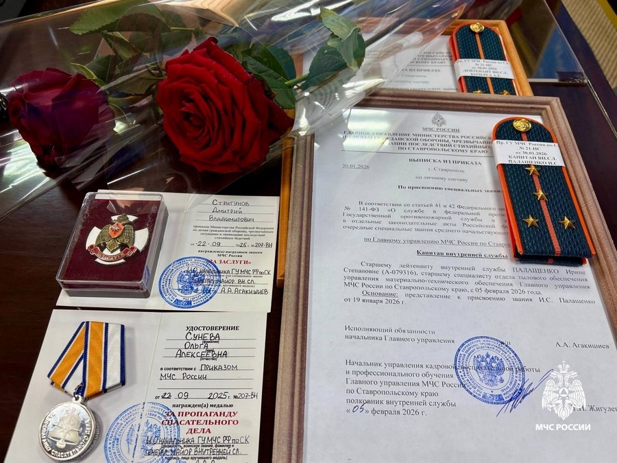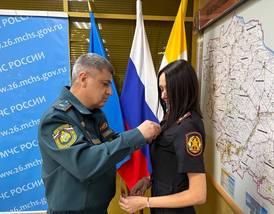 Награда вручена на торжественной церемонии в Главном управлении МЧС России по Ставропольскому краю. Мероприятие прошло под руководством исполняющего обязанности начальника краевого управления МЧС генерал‑майора внутренней службы Апреля Агакишиева.