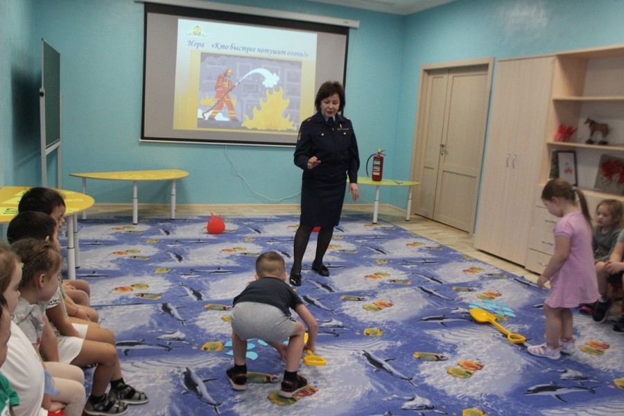 Занятие прошло в игровой форме: ребята разгадывали загадки, находили ошибки в действиях сказочных героев в случае возникновения пожара, играли. Какие действия в конкретно сложившейся обстановке при пожаре необходимо выполнять, ребята отработали, разделившись на 2 команды. А в игре «Спасительный звонок» «Огоньки» выучили номера телефонов, по которым нужно звонить в случае возникновения пожара, в закончилась встреча игрой «Кто быстрее потушит огонь». Такие занятия будут проходить по плану каждые две недели до конца года, а в новом учебном году юные пожарные сами будут рассказывать дошколятам о правилах пожарной безопасности.
